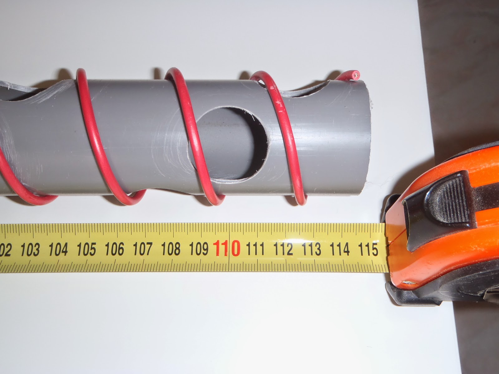 Pour respecter le calcul parfait il faudrait un tube de diamètre 38 mm. Je n'ai que du tube de 40 mm auquel il faut ajouter l'épaisseur de l'isolant du fil.
