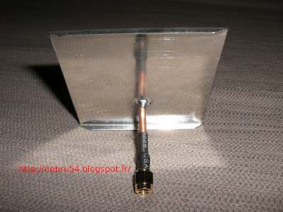 L'antenne biquad WiFi 2,4 GHz que j'ai fabriqué en 2008 voir ici, peut avec quelques rajouts gagner 3 dB de gain.